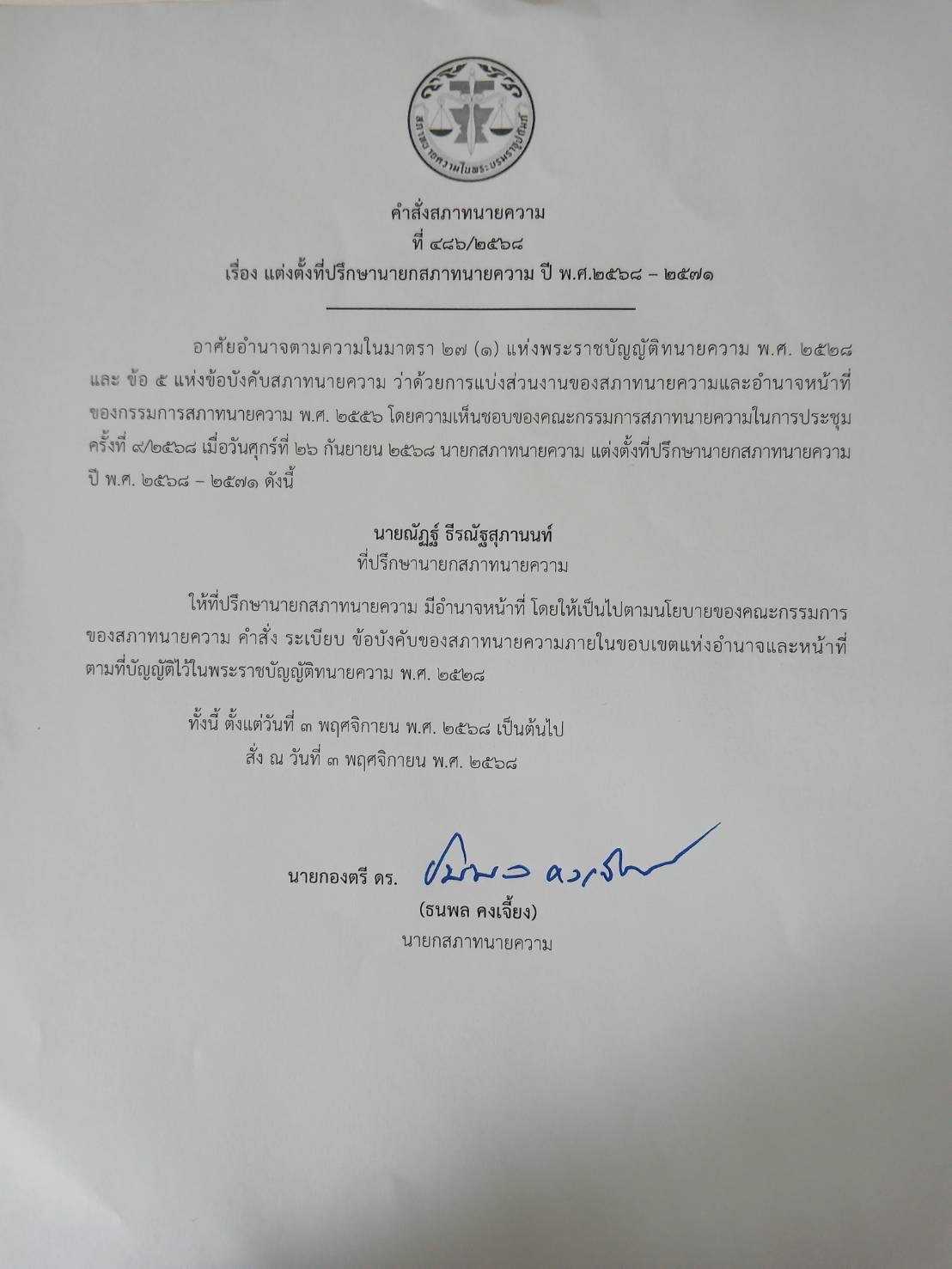 คำสั่งสภาทนายความที่ ๔๘๖/๒๕๖๘