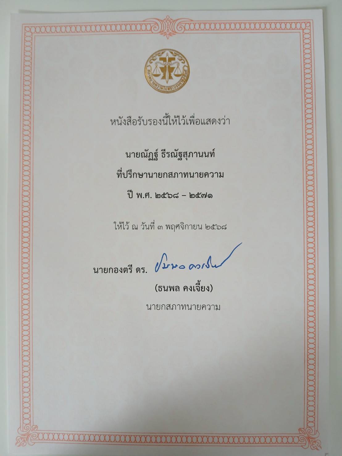 ครั้งที่ ๙/๒๕๖๘ เมื่อวันศุกร์ที่ ๒๖ กันยายน ๒๕๖๘ นายกสภาทนายความ แต่งตั้งที่ปรึกษานายกสภาทนายความ